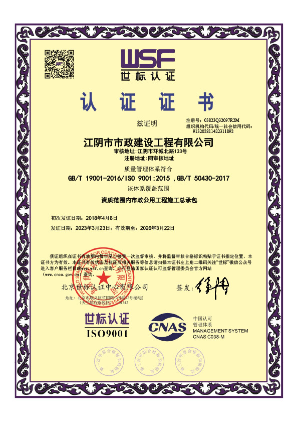 | • 江阴市澄江东路延伸段道路改造工程 | (2014年度) |